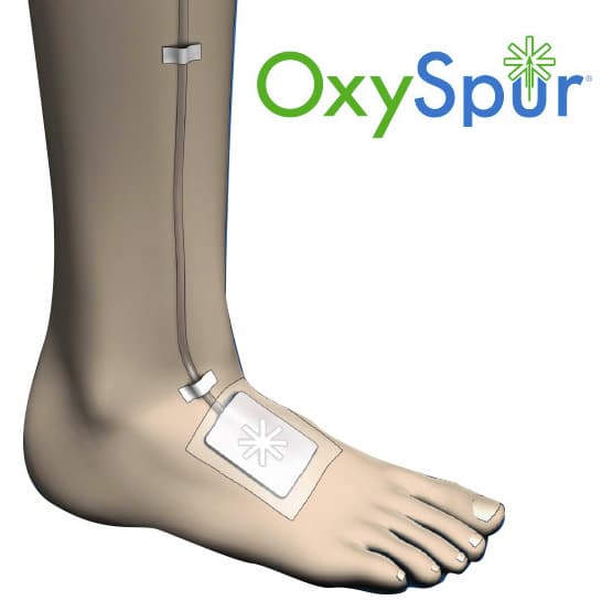 The OxySpur® Oxygen Diffusion Dressing is an all-in-one dressing for medium to high exudating wounds. The dressings come in 4” x 5” and 2” x 2” and are available in adhesive and non adhesive. They may also be trimmed to fit a unique would size. The OxySpur® Lite Oxygen Diffusion Dressing is an all-in-one dressing for low exudating, surgical wounds. The dressing comes in 2” x 8” adhesive. Both the OxySpur and the OxySpur Lite are designed to ensure an even distribution of oxygen over the entire wound.