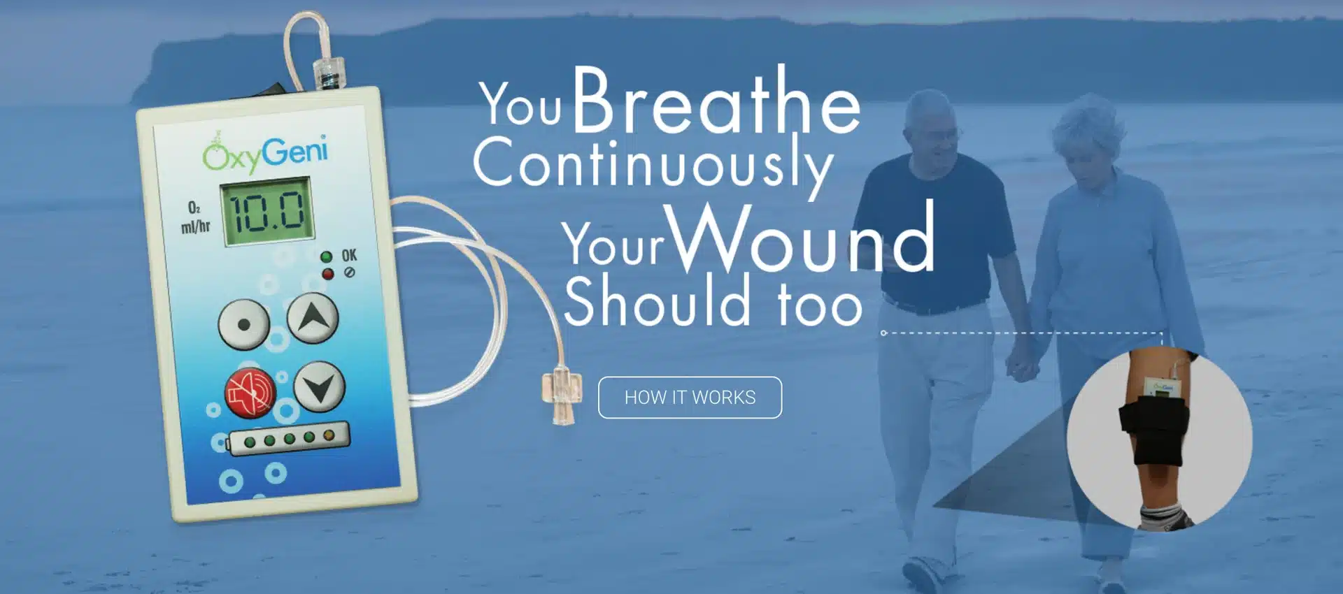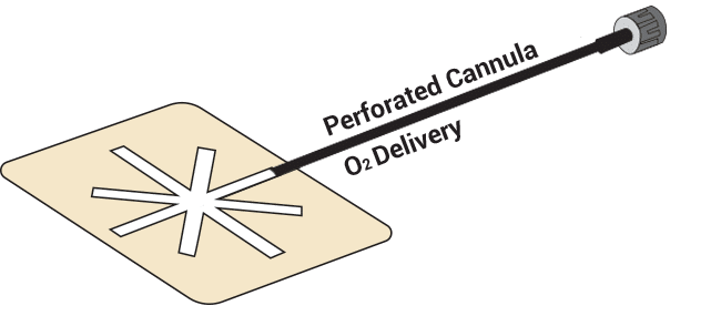 Diffuses pure, humidified oxygen directly into tissues 24/7